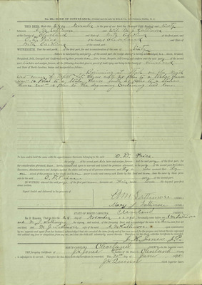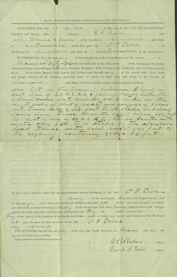 1896, FEB 19. Elijah Biggerstaff Baber (1864-1944) and Winnie Gordon Weaver Baber (1873-1946) deed of property transfer to Oliver Dixon Price.