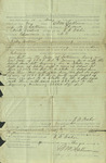 Donor: First National BankCondition Notes: Measurement, 15.5"x11". Two vertical folding lines and one horizontal line are visible. Acidic staining is visible around the edges and creases. Some of the black ink has faded. There is a purple residue on the left-middle side. Holes are visible at where the folding lines intersect; which in itself has caused small 1" incisions. The outer middle fold on the ther side shows signs of significant acid buildup and dirt which had greatly discolored the paper. The edges at the bottom have a 1-1.5" tear along the vertical creases in the paper. There is spot staining in various places. Some of the ink has bled through to the other side in a few places.