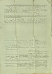 Condition Notes: Measurement, 15.5"x11". Two vertical folding lines and one horizontal line are visible. Acidic staining is visible around the edges and creases. Some of the black ink has faded. There is a purple residue on the left-middle side. Holes are visible at where the folding lines intersect; which in itself has caused small 1" incisions. The outer middle fold on the ther side shows signs of significant acid buildup and dirt which had greatly discolored the paper. The edges at the bottom have a 1-1.5" tear along the vertical creases in the paper. There is spot staining in various places. Some of the ink has bled through to the other side in a few places.
