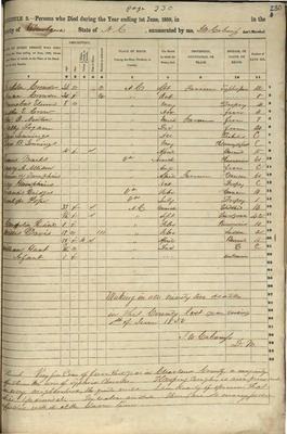 This copy of the Federal Census contains a lengthy annotation by Dr. James W. Cabaniss (census enumerator) regarding the overall state of health and disease in Cleveland County that was not included on the copy held and microfilmed in the National Archives.