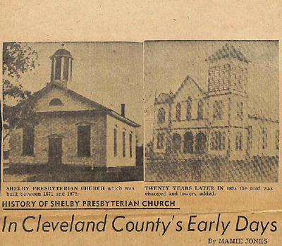 This article traces the history of Shelby Presbyterian Church from its organization in 1858 through the early 20th century. It describes the founding members, early worship in homes and other churches, and construction of the first church building completed in 1875. The narrative highlights hardships during the Civil War and Reconstruction, when only a few women sustained the congregation, and later growth under successive pastors. It also documents church leadership, expansions, and regional Presbyterian developments.