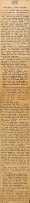 The clippings in this collection vary in condition; some issues are undated, partially damaged, or incomplete. Articles in the collection reflect the historical context and language conventions of the period in which it was written. Some terminology and descriptions used in the text may be outdated or considered inappropriate by modern standards. These materials are presented for research and educational purposes to preserve the historical record and to support understanding of past perspectives, social conditions, and cultural attitudes.