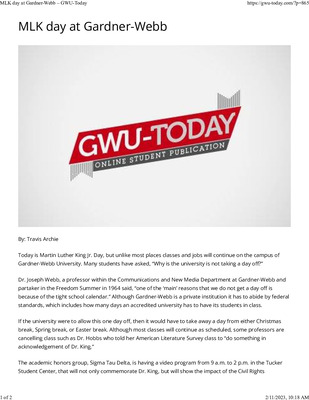 Today is Martin Luther King Jr. Day, but unlike most places classes and jobs will continue on the campus of Gardner-Webb University. Many students have asked, “Why is the university is not taking a day off?”