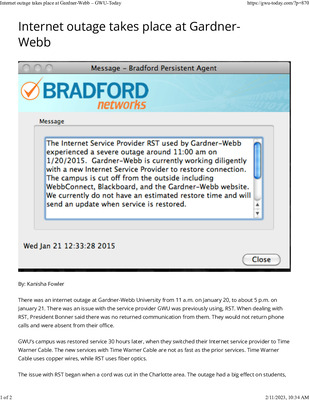 After about 30 hours of no service, the internet crisis at Gardner Webb has been temporarily fixed. Around 5 p.m. Wednesday, Internet access slowly became available to faculty devices and then to the student devices. Now many people have questions about the outage and rumors have developed.
