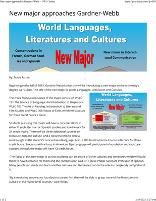 Beginning in the fall of 2015, Gardner Webb University will be introducing a new major to the university’s degree curriculum. The title of the new major is World Languages, Literatures and Cultures.