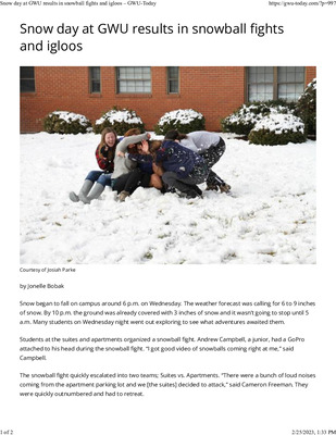 Snow Day at GWU Results in Snowball Fights and Igloos