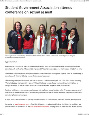 Five members of Gardner Webb’s Student Government Association traveled to Elon University to attend a sexual assault conference. They went to represent GWU and were exposed to many issues in today’s society.