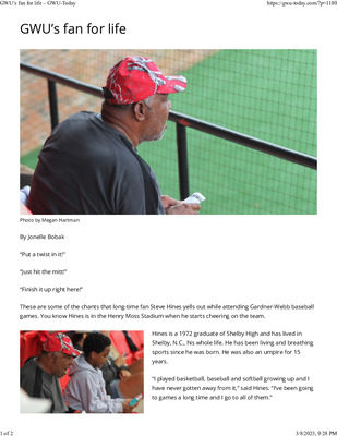 These are some of the chants that long-time fan Steve Hines yells out while attending Gardner-Webb baseball games. You know Hines is in the Henry Moss Stadium when he starts cheering on the team.