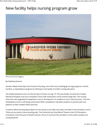 New Major Approaches Gardner-Webb