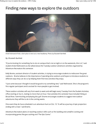 “If you’re looking for something fun to do on campus that’s not at night or on the weekends, this is it,” said student Ande Malinowski as she talked about the Tuesday outdoor adventure activities organized by Adventure Recreation this semester.