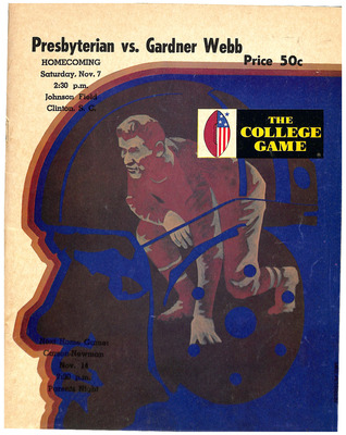 Media guide for the November 7, 1970 football game between Gardner-Webb and Presbyterian.