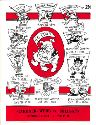 Media guide for the October 3, 1970 football game between Gardner-Webb and Millsaps.
