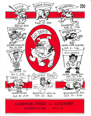 Media guide for the October 10, 1970 football game between Gardner-Webb and Guilford.