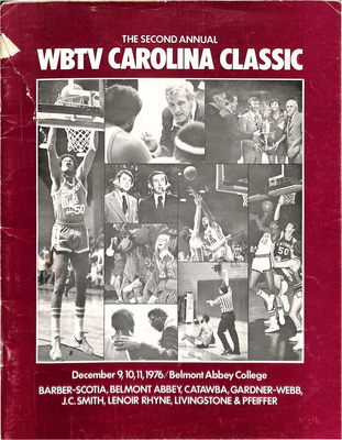 Media guide for the second annual WBTV Carolina Classic basketball tournament hosted at Belmont Abbey College. Tournament features teams from Barber-Scotia College, Belmont Abbey College, Catawba College, Gardner-Webb College, Johnson C. Smith College, Lenoir Rhyne College, Livingstone College, and Pfeiffer College.